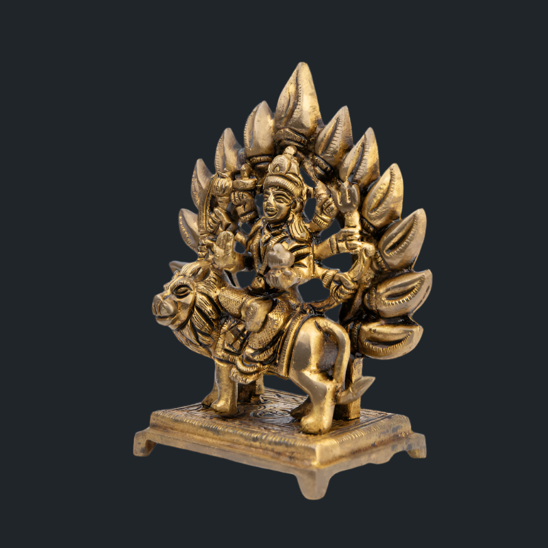 Clean the idol gently with a soft cloth to keep its shine. Avoid harsh chemicals that may tarnish the brass. With proper care, this Durga Maa idol will remain a treasured part of your collection for generations.
