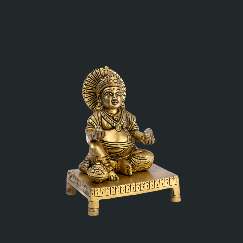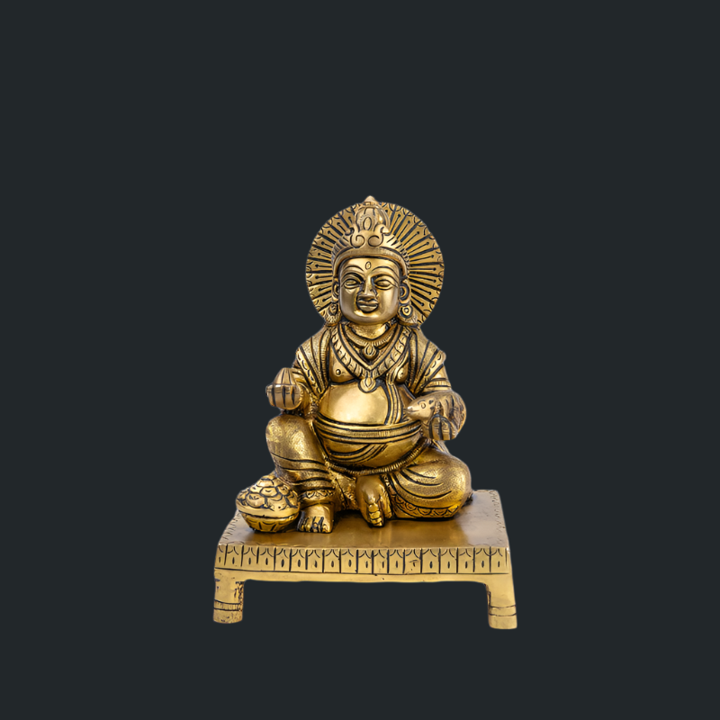 Handcrafted Brass Kuber on Chowki – Lord of Wealth Statue