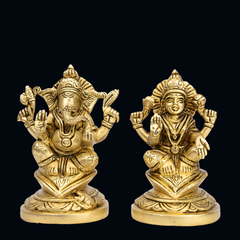 Handcrafted Brass Lakshmi Ganesha with U Base – Wealth and Prosperity Idol