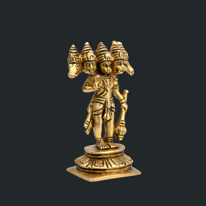 Handcrafted Brass Panchmukhi Hanuman on Flower Base – Five-Faced Hanuman for Protection