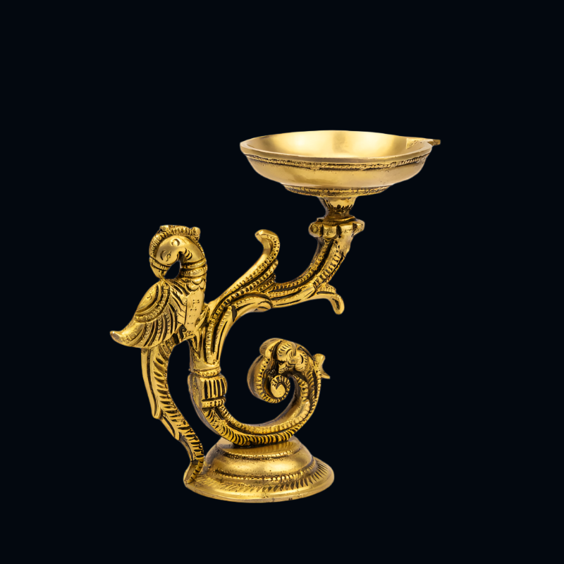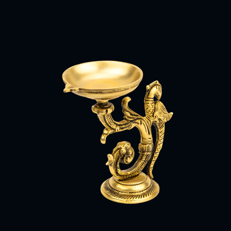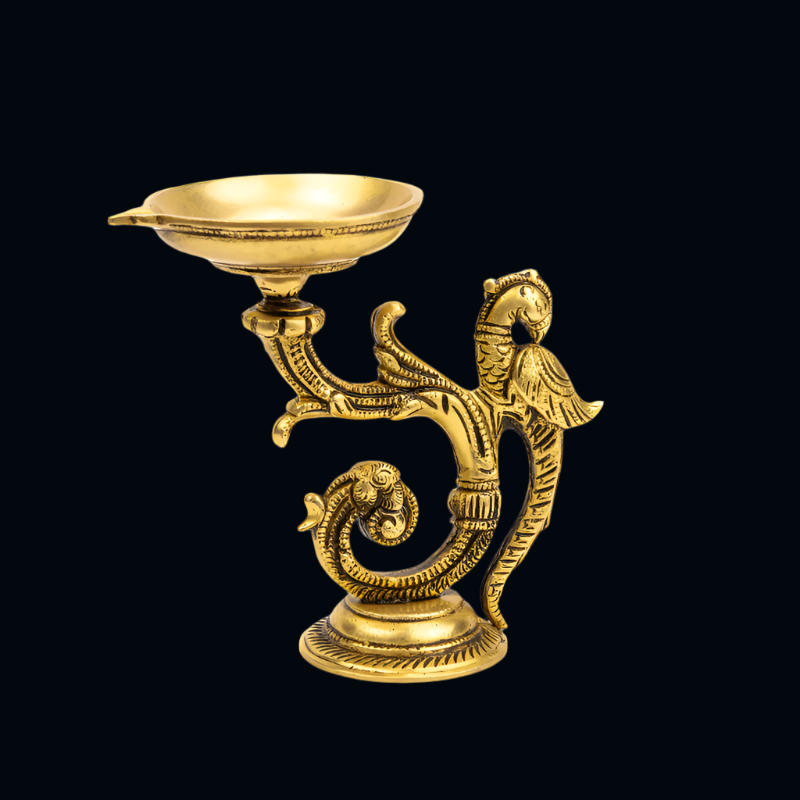 Parrot Design: The deepak has a carefully crafted parrot, symbolizing beauty, devotion, and positivity, making it a special piece in your pooja collection.