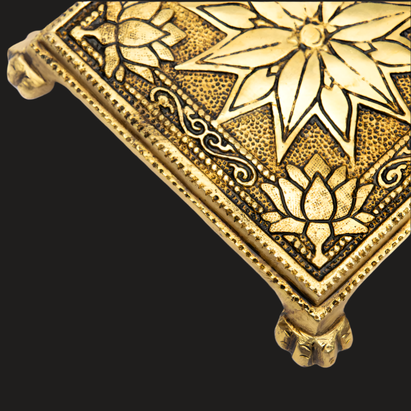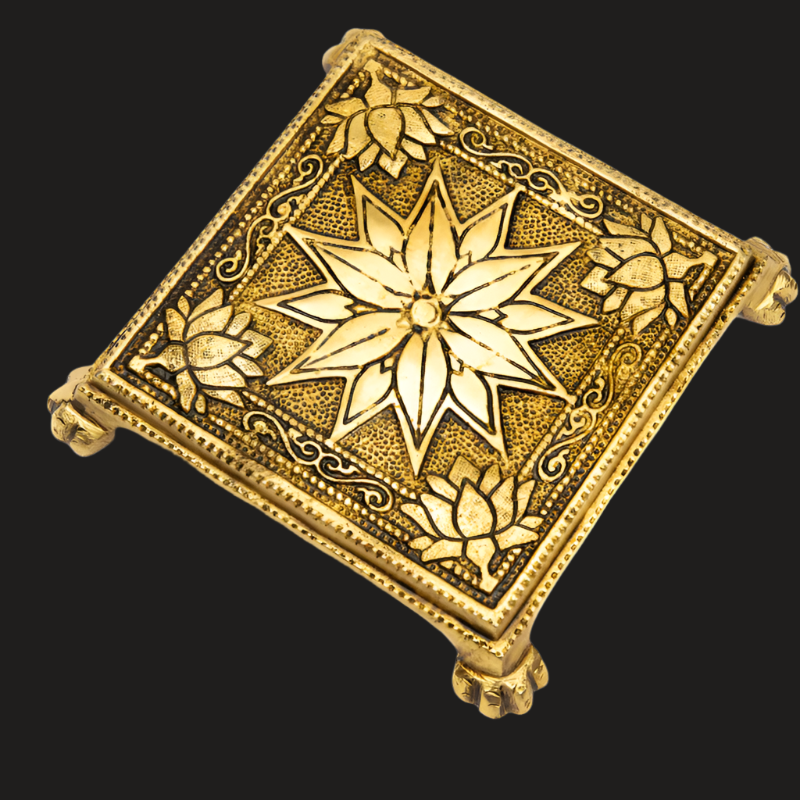 Add beauty to your pooja setup with the Brass Pooja Chowki featuring a star and flower design. This decorative chowki is perfect for holding deities or pooja items during prayers.